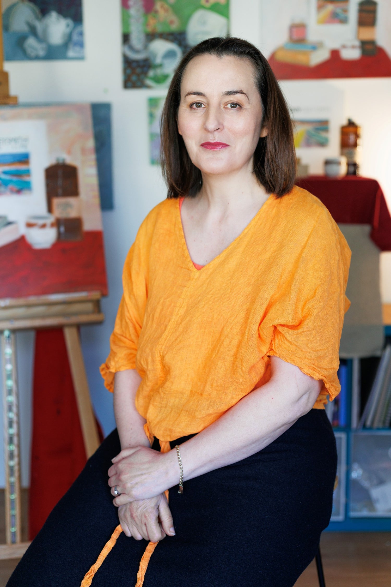 The safety of home and daydreaming are the foundation of my art practice. Nowadays, I get lost in my world when I am in my garden, whether I am weeding or sprinkling the seeds from flowers that have dried out or planting something new from the garden centre. I bring this magical feeling into all of my work, infusing it with colour and light and layers. Setting up my still life objects takes me ages, as I look into the glass or silver and get lost in them once again.